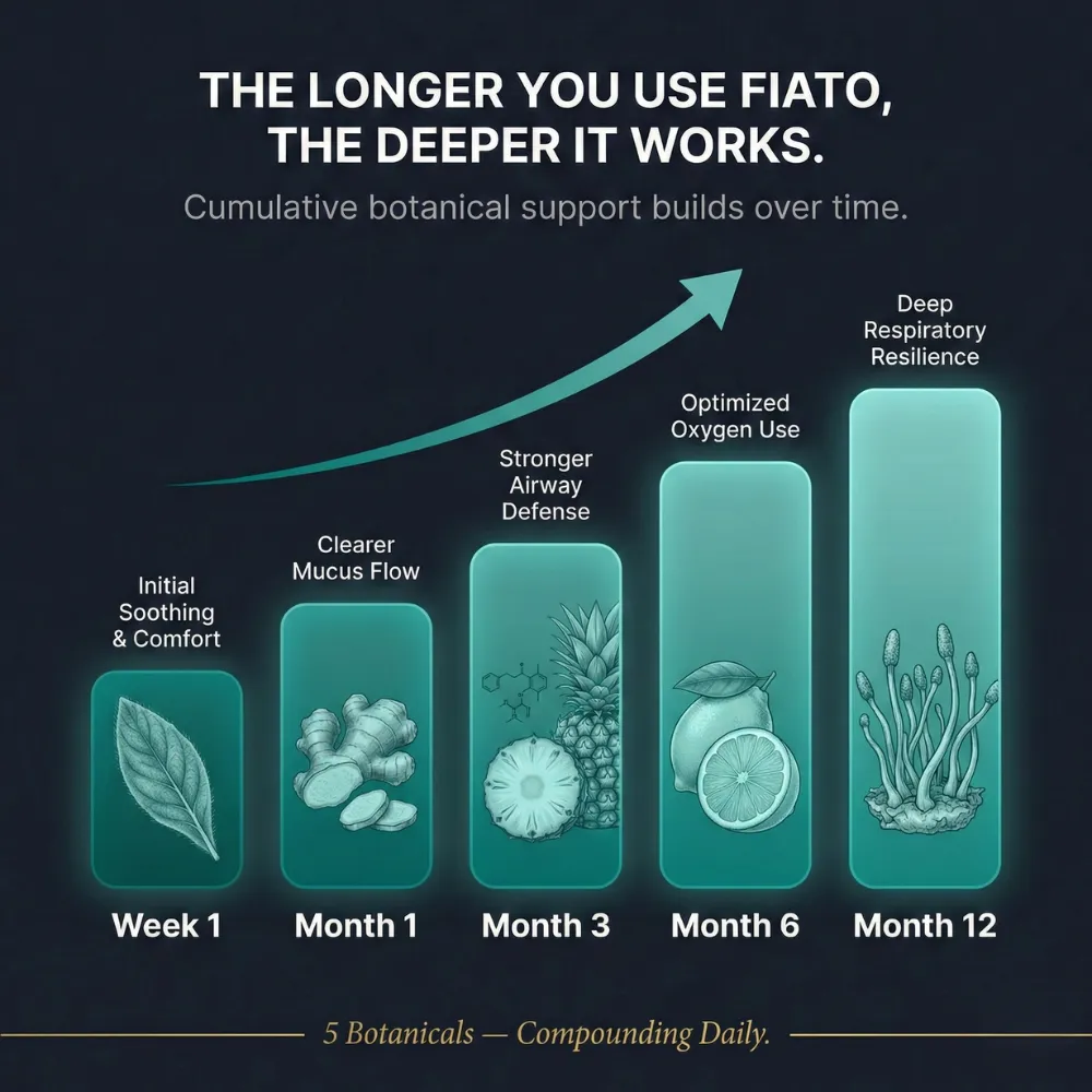 As you begin using FIATO daily, your airways start receiving consistent botanical support. You may notice breathing feels more comfortable — especially first thing in the morning.